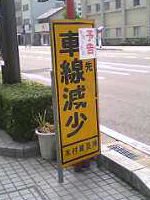 自転車に乗ってたら、目の前に「車線減少」の標識が。