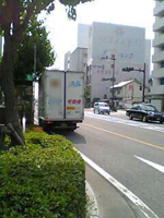 おっと、歩道側の1車線が宅配のトラックで通れなくなっています。